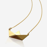 This gorgeous necklace designed by Shlomit Ofir was inspired by nautical themes. Its origami paper boat-shaped pendant hangs on a delicate link chain.